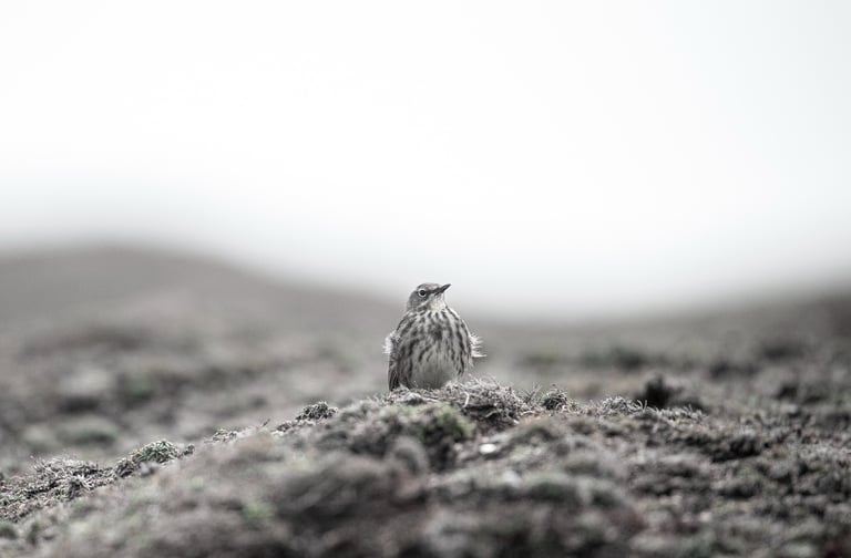 Mineral feathers and the size of a pebble, visible in its song when in love. This pipit is one of those creatures that observe us without being seen. A hidden detail of the Breton moors and cliffs, it lives in a setting that we can barely make out, but which is its home.